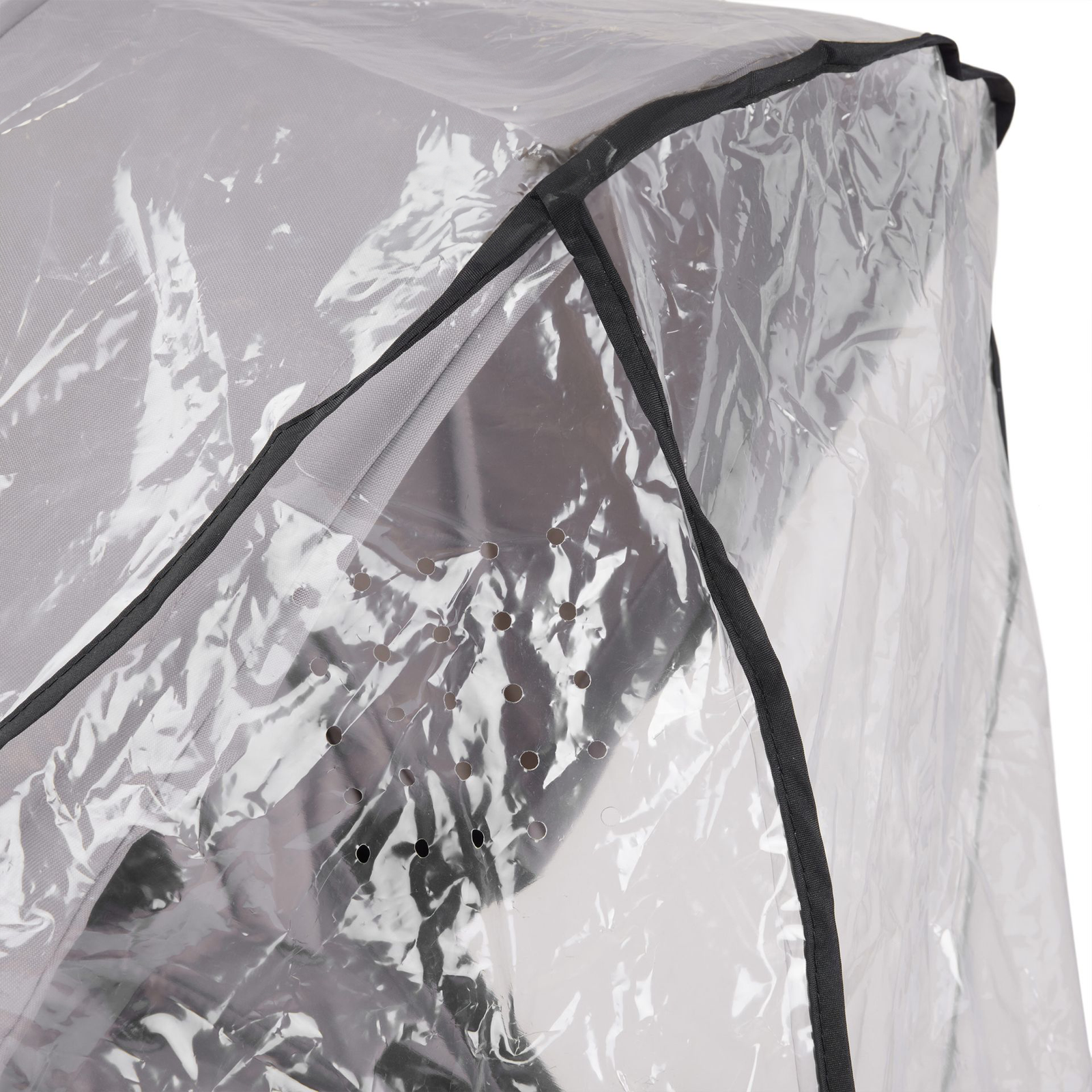 ด้วยช่องระบายอากาศด้านข้าง จึงรับประกันการหมุนเวียนของอากาศที่เหมาะสม จึงมีอากาศบริสุทธิ์หมุนเวียนใต้ผ้าคลุมกันฝนได้เพียงพอตลอดเวลา วัสดุโปร่งใสยังช่วยให้ลูกน้อยของคุณมองเห็นภายนอกได้ดี จึงสามารถสำรวจบริเวณโดยรอบได้แม้ในสภาพอากาศฝนตก